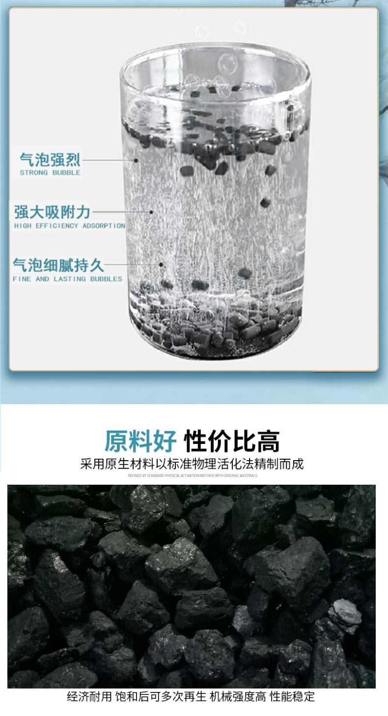 四、顆粒炭和粉狀炭作用相同,但顆粒炭不易流失所以容易再生重復(fù)使用,相對(duì)粉狀活性炭來(lái)說(shuō)顆粒炭更適合用于污染較輕、需連續(xù)運(yùn)行的水處理工藝,但是粉狀炭目前不易回收所以一般為一次性使用,相對(duì)于顆粒活性炭它更適用于間歇地污染較重的水處理工藝。