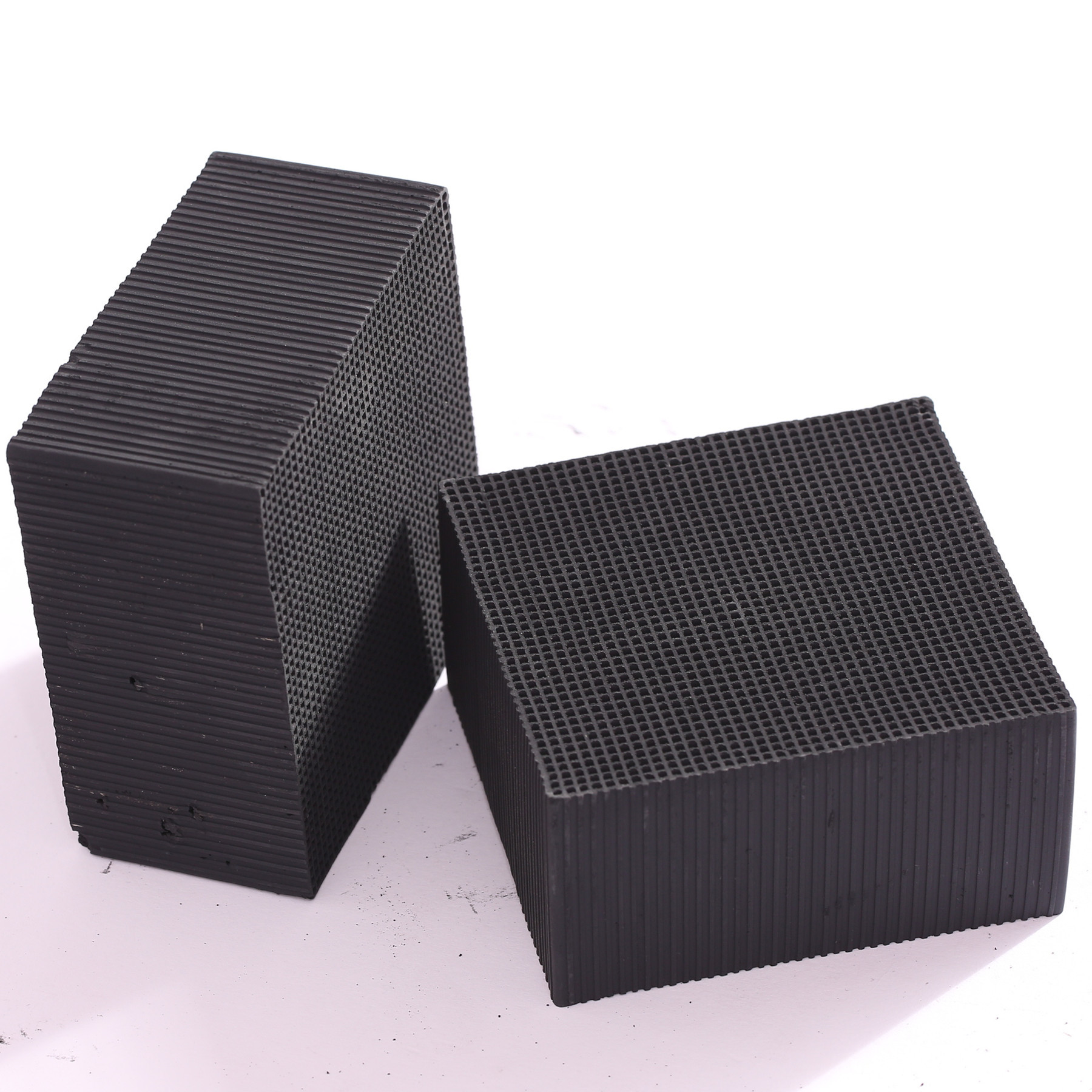 5、通常的蜂窩結(jié)構(gòu)活性炭主要有圓柱形、橢圓柱形和長方體三種外形,它們含有正方形、圓形、六邊形和三角形的通道,具有較大的比表面積和豐富的微孔結(jié)構(gòu)。