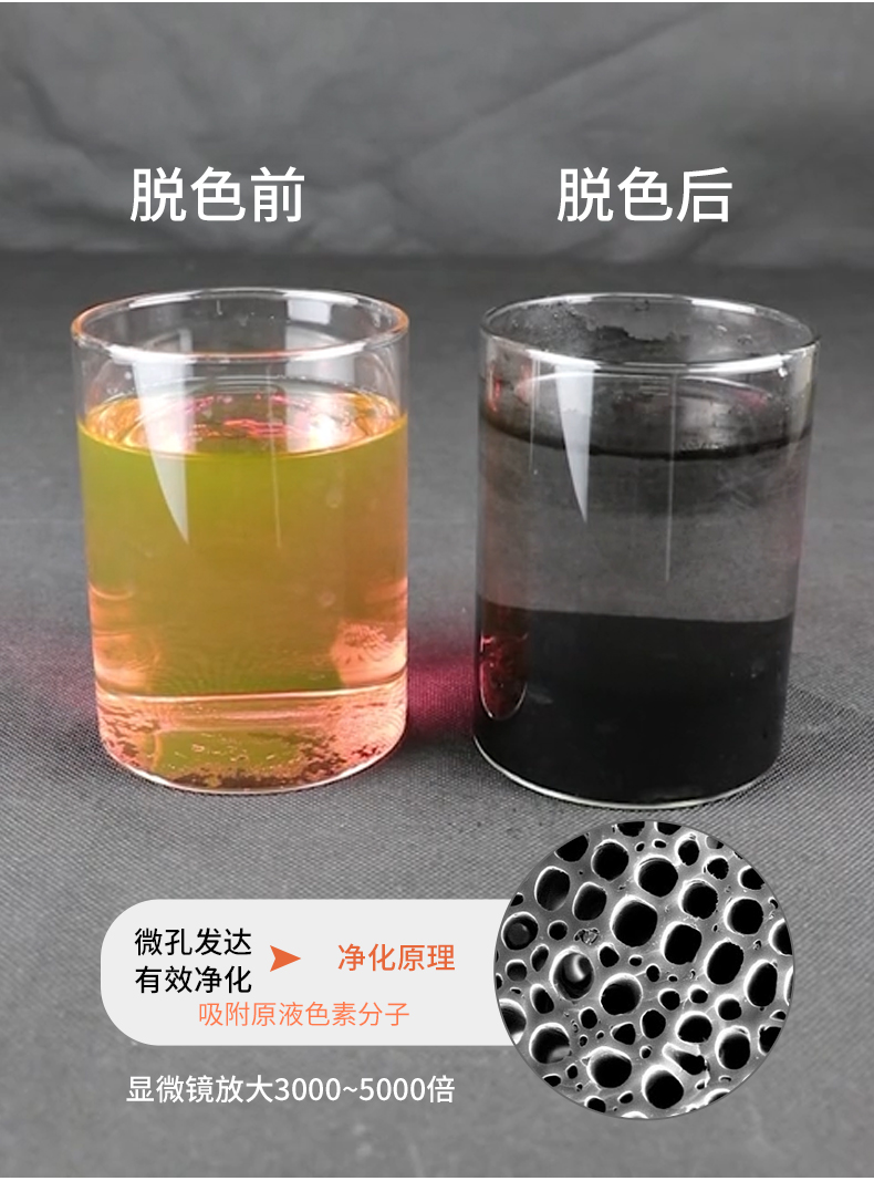 對于水:當水流過活性炭表面時,雜質(zhì)、污垢、金屬離子和氯、苯、油脂等污染物會附著在活性炭表面。因此,活性炭除具有過濾水的作用外,還具有脫色作用。