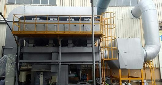 吸附法主要是利用有吸附功能的物質(zhì)對(duì)工業(yè)有機(jī)廢氣進(jìn)行吸附,以此來(lái)減少工業(yè)有機(jī)廢氣中的危害物質(zhì)的比重。而常見(jiàn)的吸附物質(zhì)主要有無(wú)機(jī)吸附材料和活性炭等兩類。其中活性炭是一種內(nèi)部含有多孔物質(zhì)的材料,常見(jiàn)的有破碎狀碳素纖維蜂窩、普通活性炭等?;钚蕴靠梢詫?shí)現(xiàn)對(duì)比自身孔隙小的物質(zhì)進(jìn)行有效的吸附,并為了促進(jìn)吸收的效果,需要提升自身溫度和降低內(nèi)部壓力。研究發(fā)現(xiàn),活性炭吸附工業(yè)有機(jī)廢氣可以實(shí)現(xiàn)對(duì)有機(jī)廢氣的回收,從而實(shí)現(xiàn)對(duì)回收有機(jī)廢氣的再次利用,且整個(gè)吸附過(guò)程無(wú)需要提供其他能源。但是采用活性炭吸附工業(yè)有機(jī)廢氣的方法無(wú)法完全吸附有機(jī)廢氣,會(huì)遺留一定量的有機(jī)廢氣,且活性炭吸附能力隨著吸附有機(jī)廢氣量的增多而逐漸降低,即活性炭的再生成本相對(duì)較高。一般活性炭吸附工業(yè)有機(jī)廢氣主要應(yīng)用在化學(xué)成套設(shè)備的清洗或者大型空調(diào)設(shè)備上。